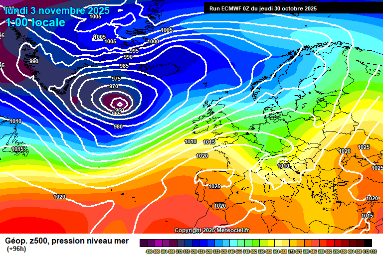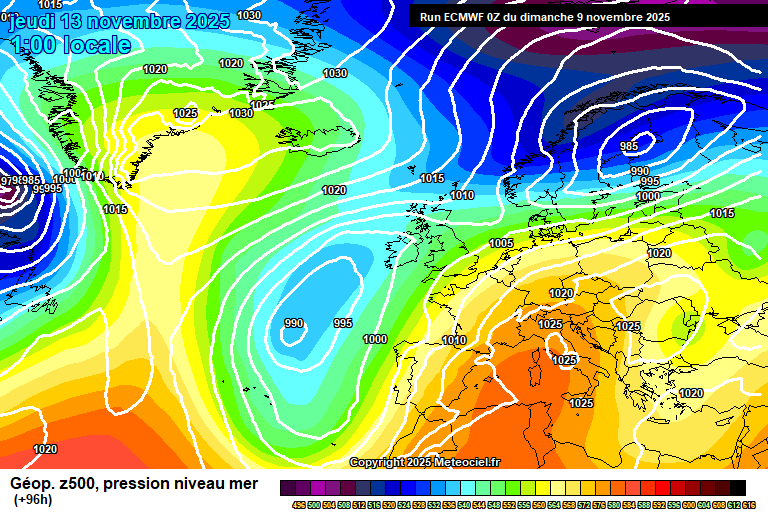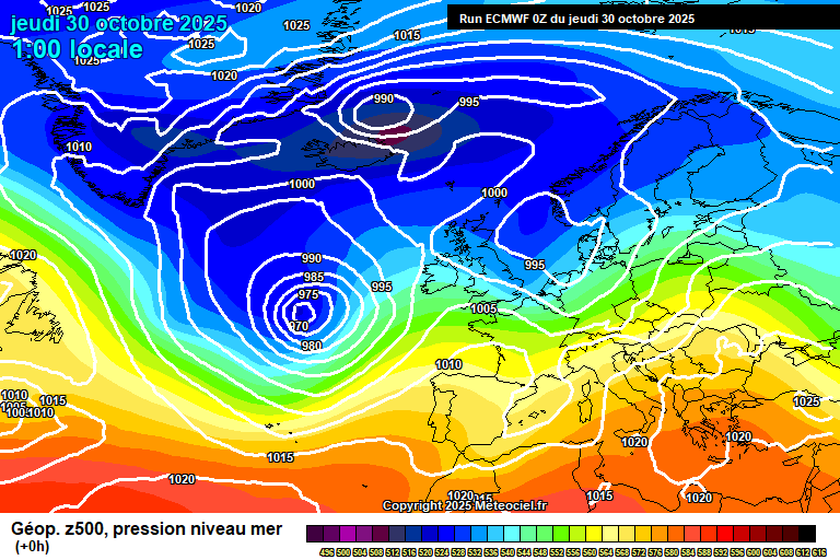By Thursday the low pressure system to our west is kind of giving up trying to cross the UK, and starts to sink south towards the Azores.