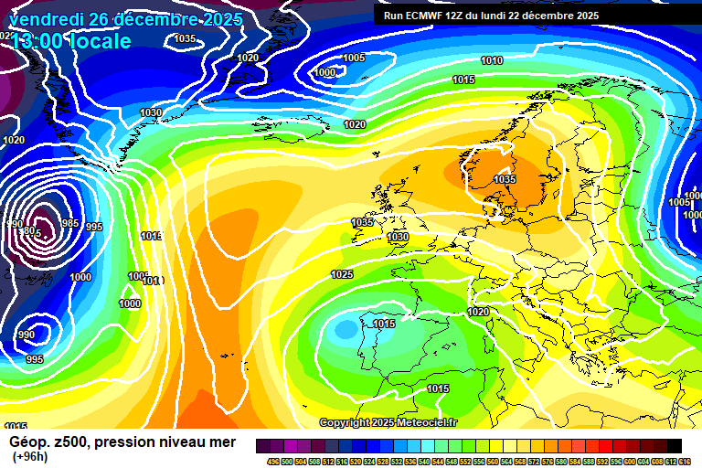 High pressure remains in control for Boxing Day, and the easterly flow remains – though not tapping to anything especially cold over Europe.