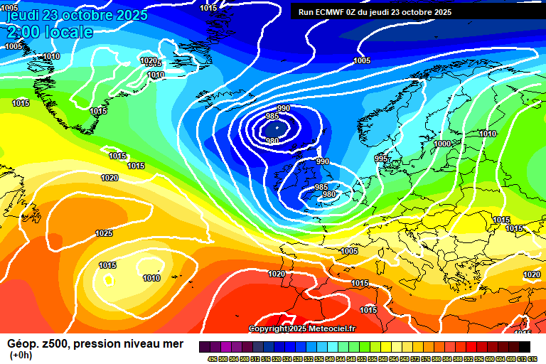 So we start with Storm Benjamin in control, which is crossing northern France, with another low pressure system wrapped up in the same circulation to the north-west of Scotland.